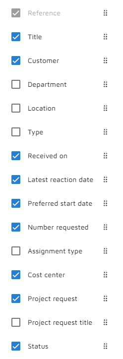 You can adjust the order of the columns by clicking on the column symbol at the top right of the overview (next to the filter icon).