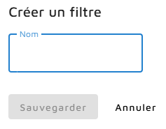 Vous pouvez également enregistrer des filtres en cliquant sur le bouton ‘Sauvegarder’ sous les champs de saisie. Vous devez ensuite donner un nom au filtre.